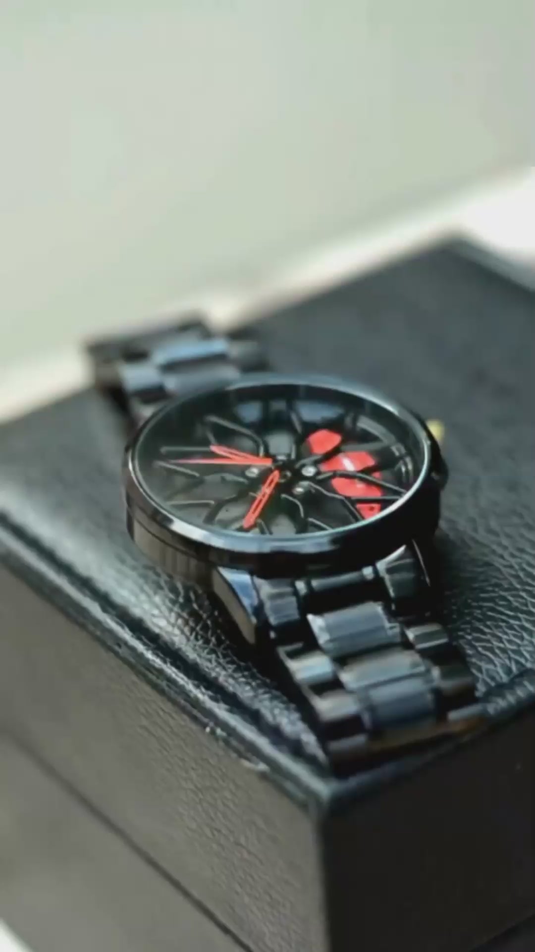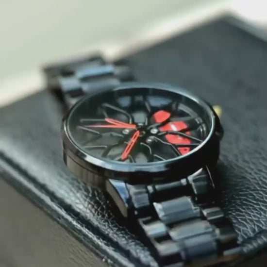 Sporty Alloy Wheel Dial Watch ⌚ | Luxury Black Steel Strap 🖤